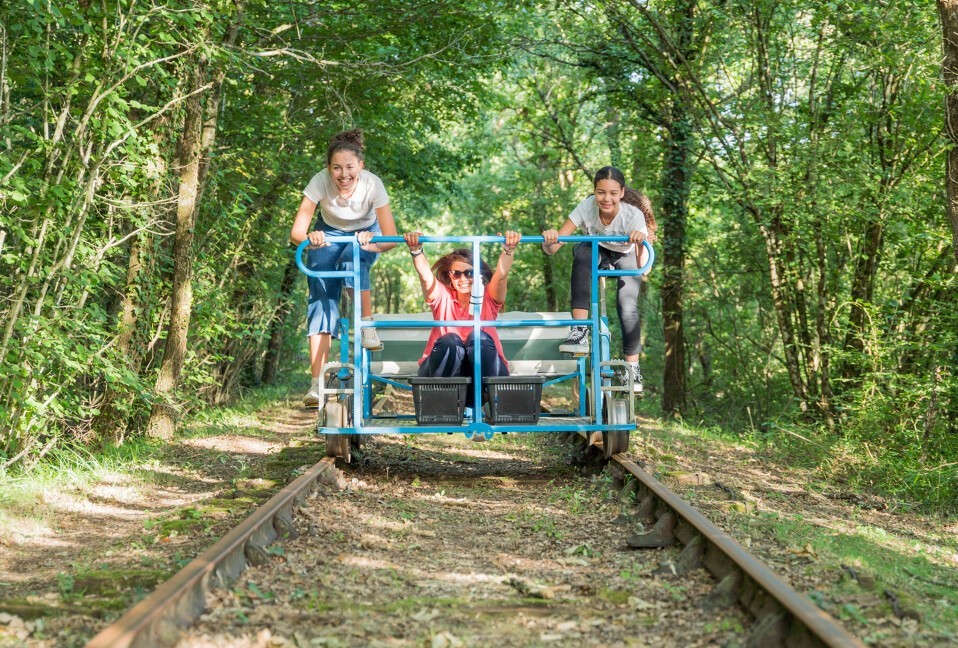 Deux personnes minimum capables de pédaler et 5 personnes maximum par vélorail.